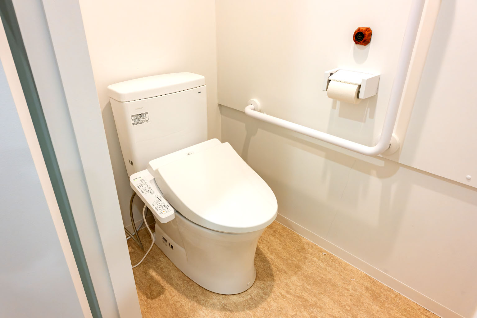 バリアフリー仕様のトイレは、介助がしやすい広さと、すべての方にとって使いやすい設備を備えています。