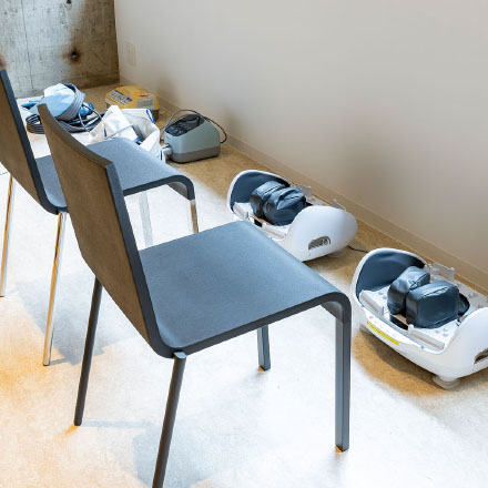 心と体をリフレッシュできるリラクゼーションスペースをご用意しています。足のむくみや疲れを和らげるフットケアをはじめ、心地よい時間をお過ごしいただけます。